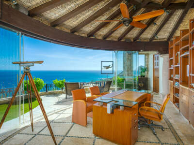 Perched 300 feet above the Sea of Cortez within the exclusive Villas Del Mar community, Casa Adriana commands sweeping 180-degree views of the coastline, turquoise waters, and the twinkling lights of San José del Cabo.